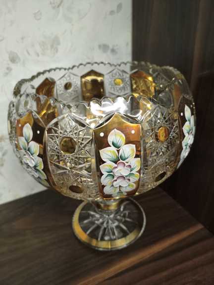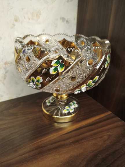 ظرف قلیان گلدار بوهمیا کریستال طلایی