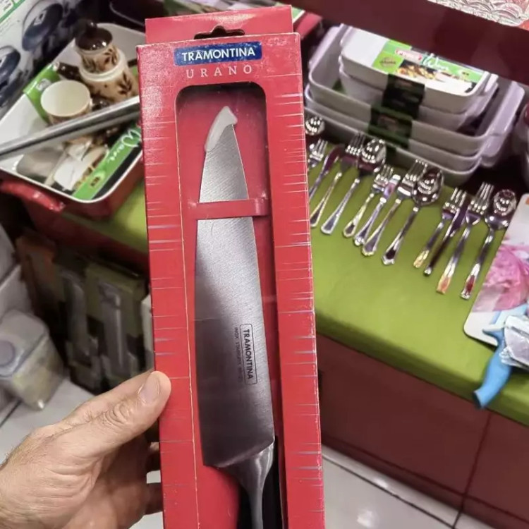 چاقو گوشت ترامونتینا تیغه تیز و برنده دسته و تیغه بصورت یک تکه است دسته از جنس باکالیت تیغه فولادی ساخت کشور برزیل