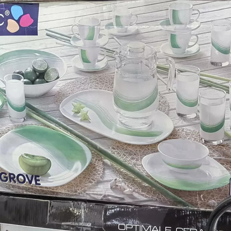 سرویس ویو سبز 46 پارچه لومینارک فرانسه شامل پلو 6 عدد خورشت خوری 6عدد پیشدستی 6 عدد کاسه ماست 6عدد فنجان و نعلبکی هر کدام6 عدد پارچ 1 عدد(با درب) لیوان 6 عدد دیس 1 عدد کاسه ماست 1 عدد