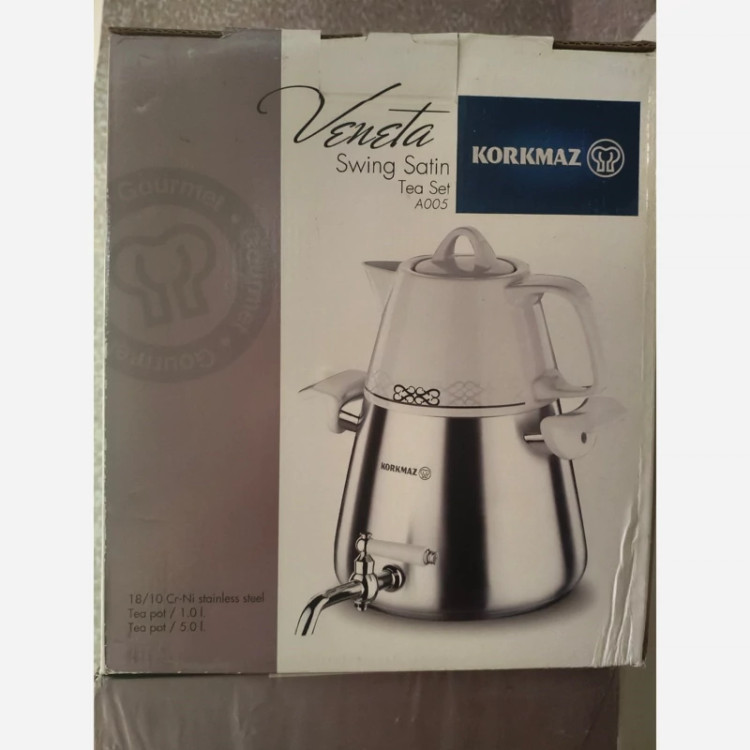 کتری و قوری شیر دار کرکماز حجم قوری ا لیتر ❌حجم کتری روی جعبه 5لیتر زده شده ولی محصول 3لیتری است جنس قوری چینی جنس کتری استیل 18،10 بسیار مرغوب،بدون آب هرگز نمیسوزد کف چدن روی دسته ی های کتری،کف قوری وکف کتری کرکماز حک شده است