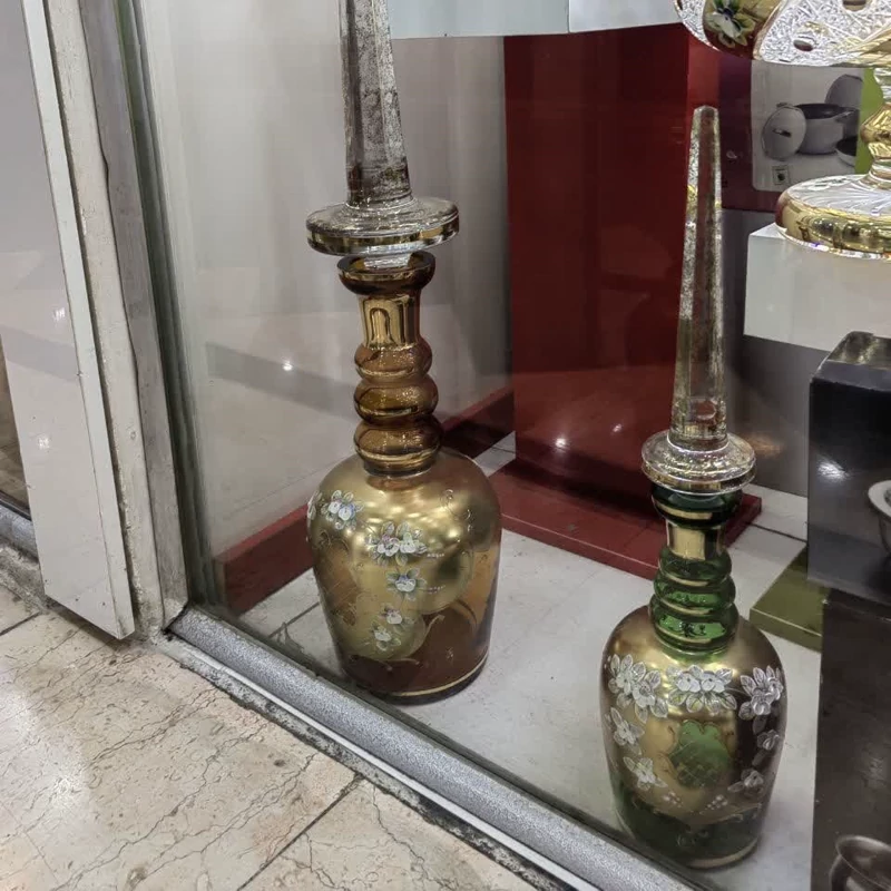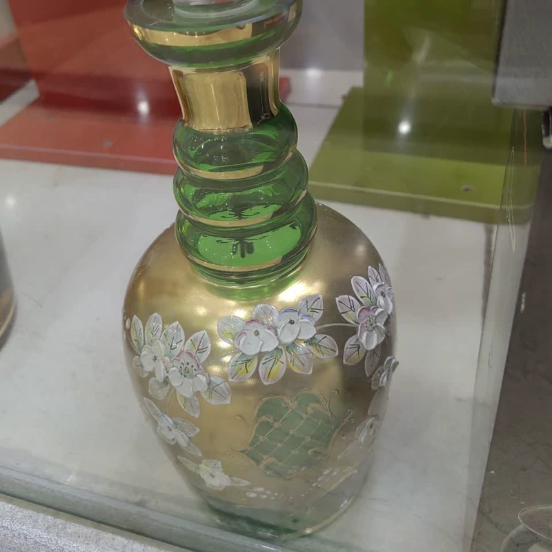 تنگ و نیزه بزرگ اگرمن زیبا و خاص پر گل و طلاکوب رنگ سبز ارتفاع 50 سانت ساخت کشور چک دقت شود،قیمت برای جفت و دو عدد است