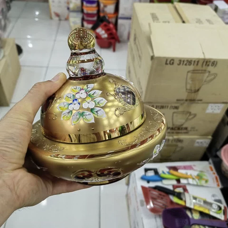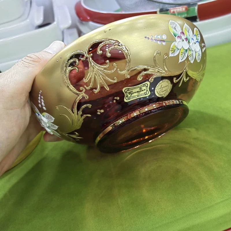شکلات خوری اگرمن مدل سفینه زیبا و خاص رنگ قرمز پر گل و طلاکوب ساخت کشور چک