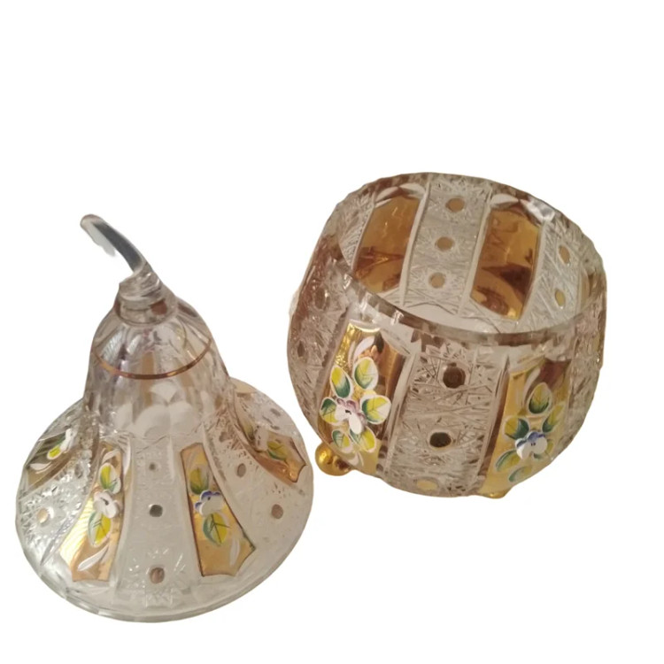 شکلات خوری گلابی سه پایه بوهمیا 180دوبر گلدار کریستال طلایی