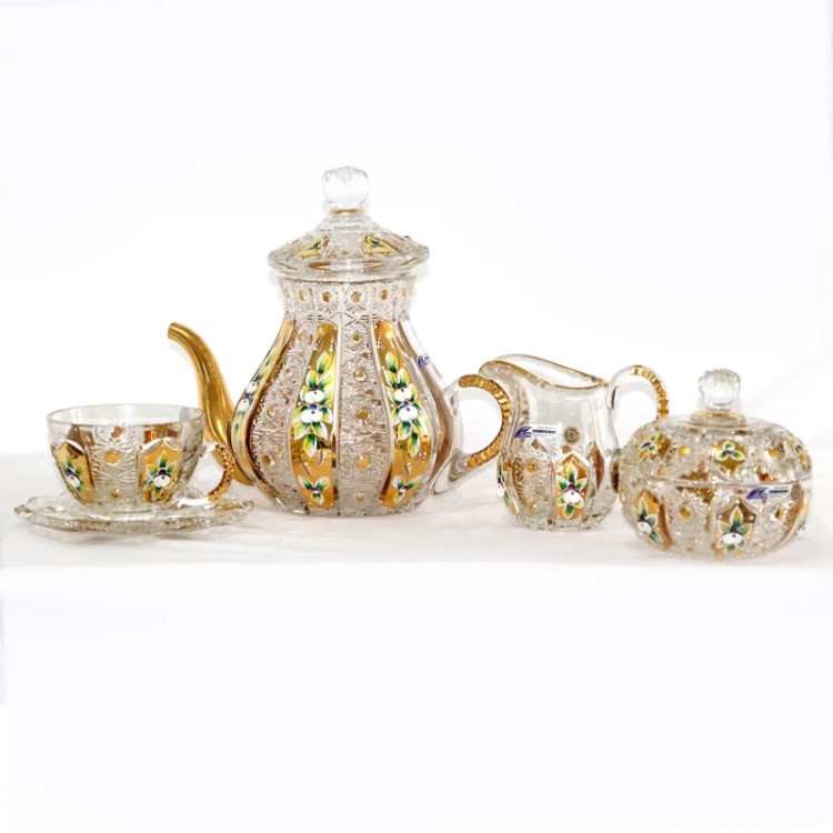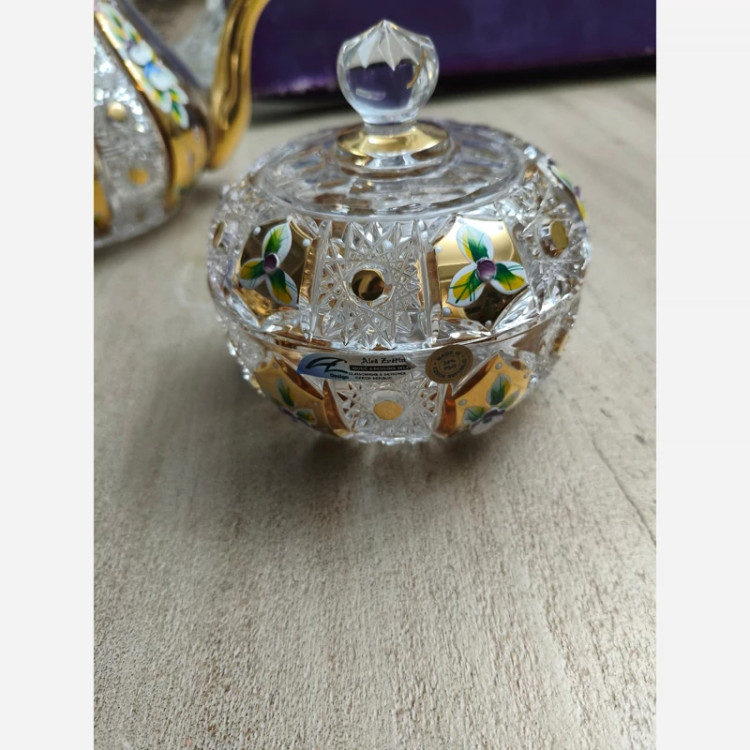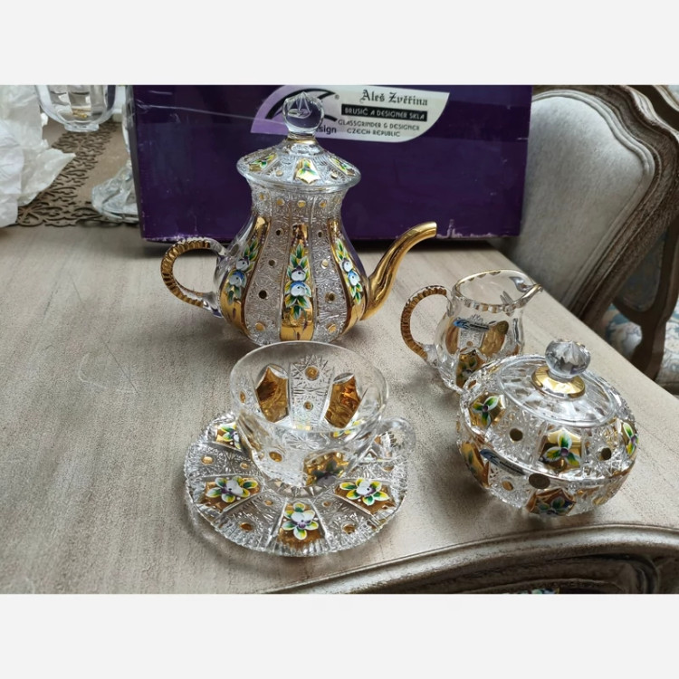سرویس چای خوری ۱۷ پارچه کریستال طلایی الیش
