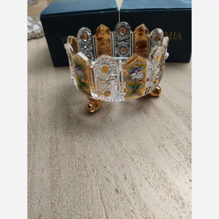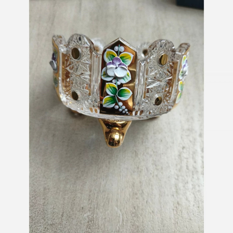 سه پایه طلایی برند بوهمیا گلدار سه پایه ارتفاع8/5 قطر 12سانت